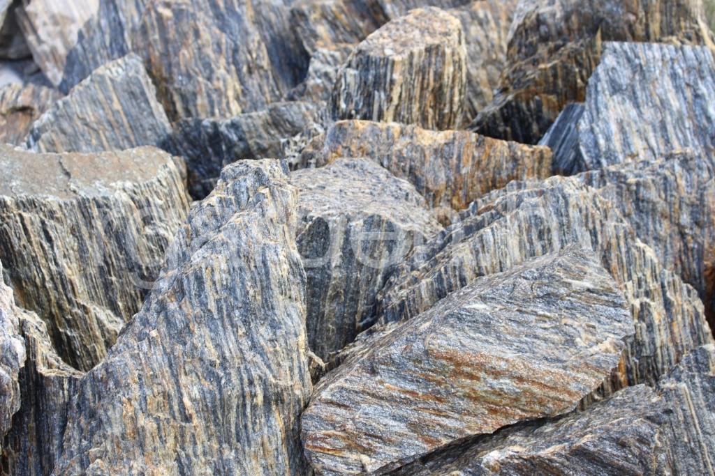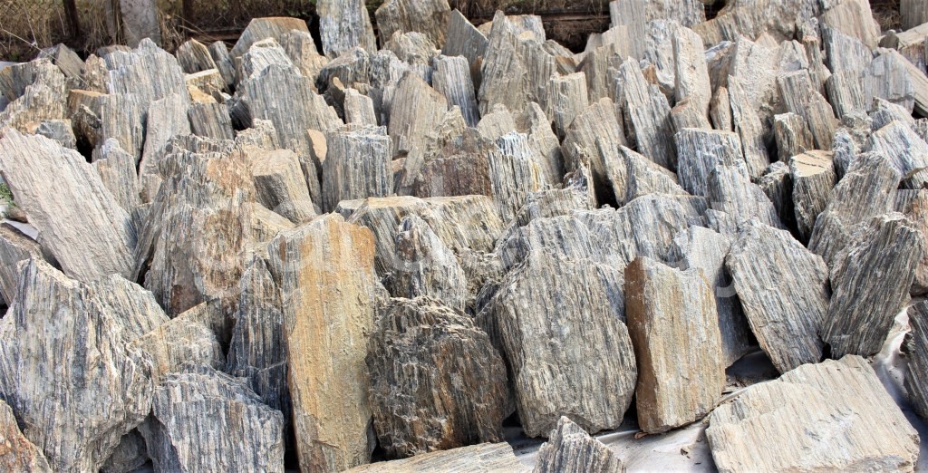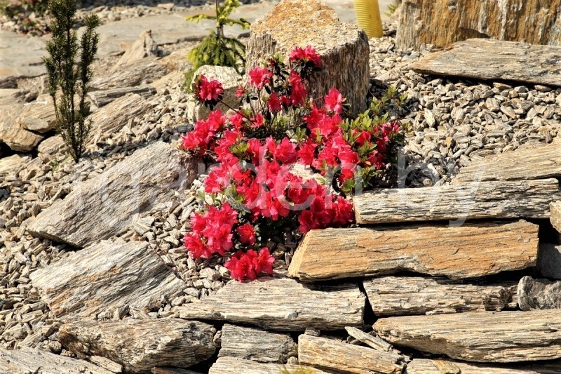 Бутовый камень «Каменная кора» не случайно носит такое название, ведь по своей слоистой полосатой текстуре минерал больше всего напоминает окаменевшие части деревьев. И именно поэтому он отлично смотрится в композициях с вечнозелёными кустарниками и деревьями. Частички слюды придают валуну деликатный блеск, который выгодно оттеняет сочную зелень декоративных садов, клумб и альпийских горок.