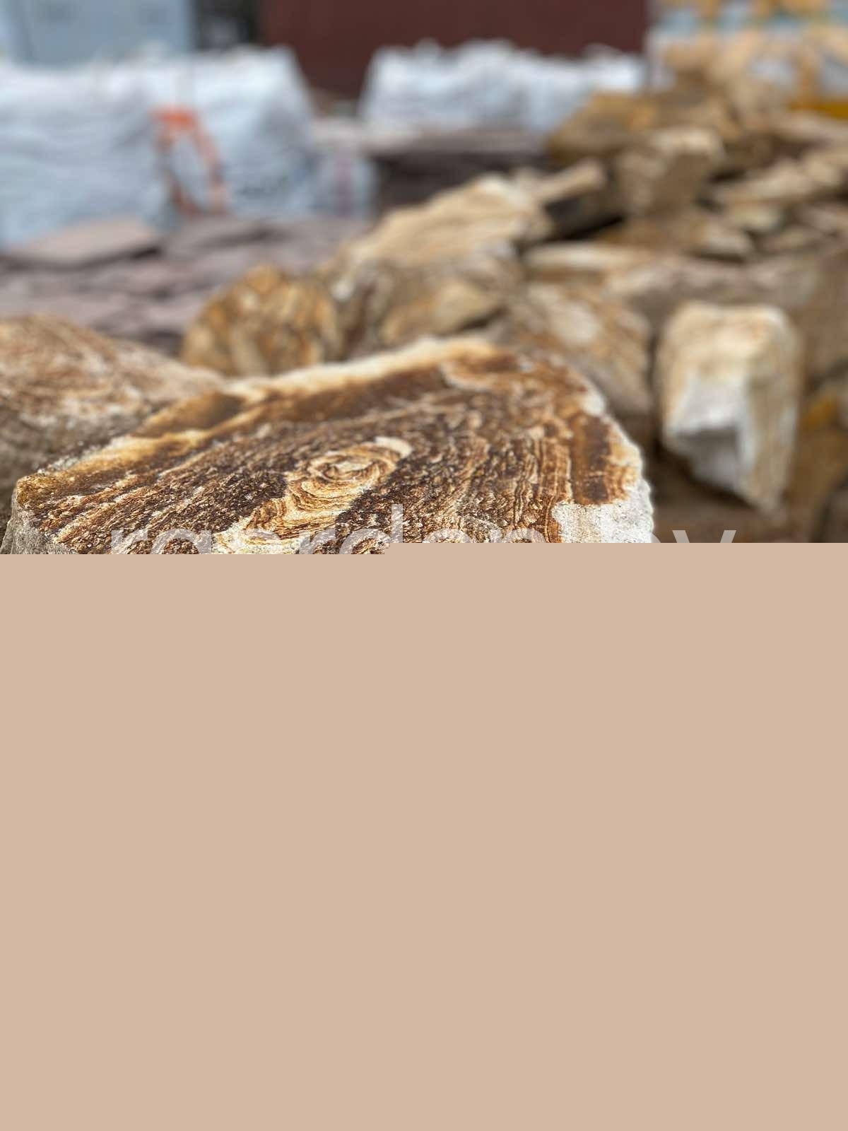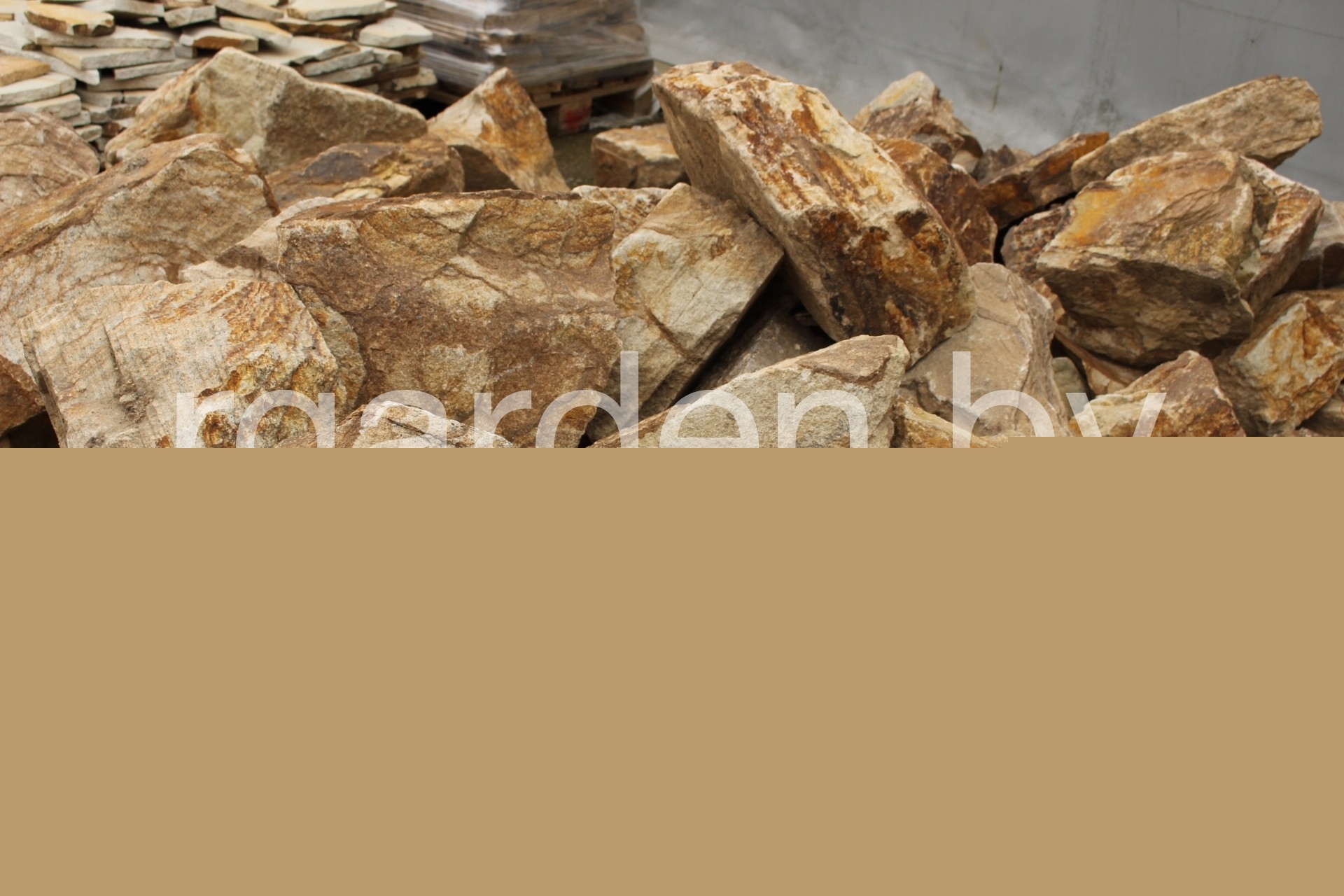 Бутовый камень Тигровый – это натуральный камень в виде кусков горной породы неправильной формы бежево-желтого цвета. Камни могут быть как округлой, так и приплюснутой формы.