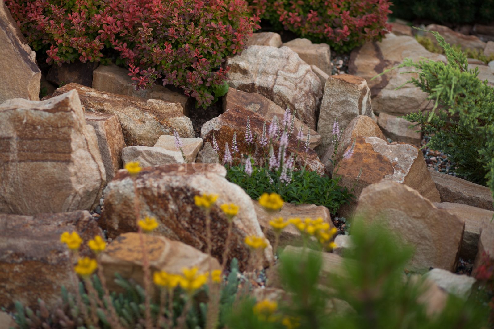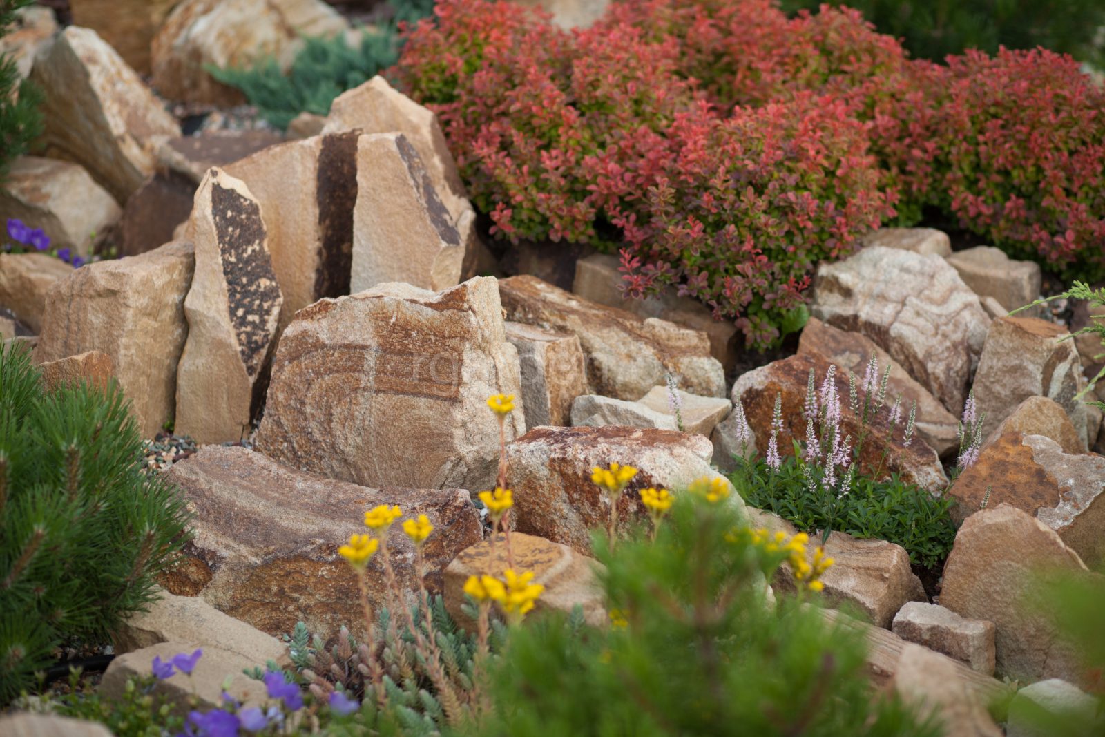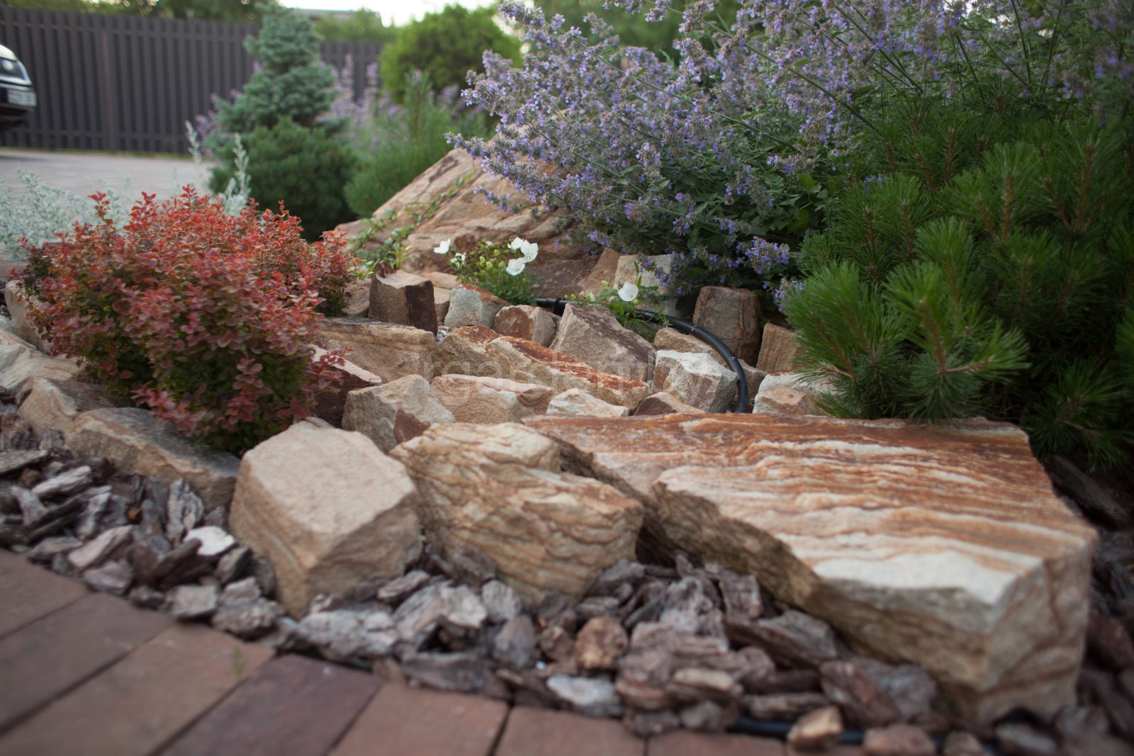 Применяется бутовый камень для ландшафтных работ при декорировании берегов водоемов, водопадов, строительстве подпорных стен, как элементы цветников и рокариев.