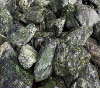 Бутовый камень змеевик(также называемый серпентинитом )галтованный представляет собой куски камня со сруглёнными краями.Змеевик является крепкой горной породой ,которая успешно применяется в сфере ландшафтного дизайна. Цветовая гамма этого камня никого не оставит равнодушным.Тёмно зелёные,малахитовые цвета с салатовым отливом сливаются в неповторимый и индивудуальный рисунок на каждом камне