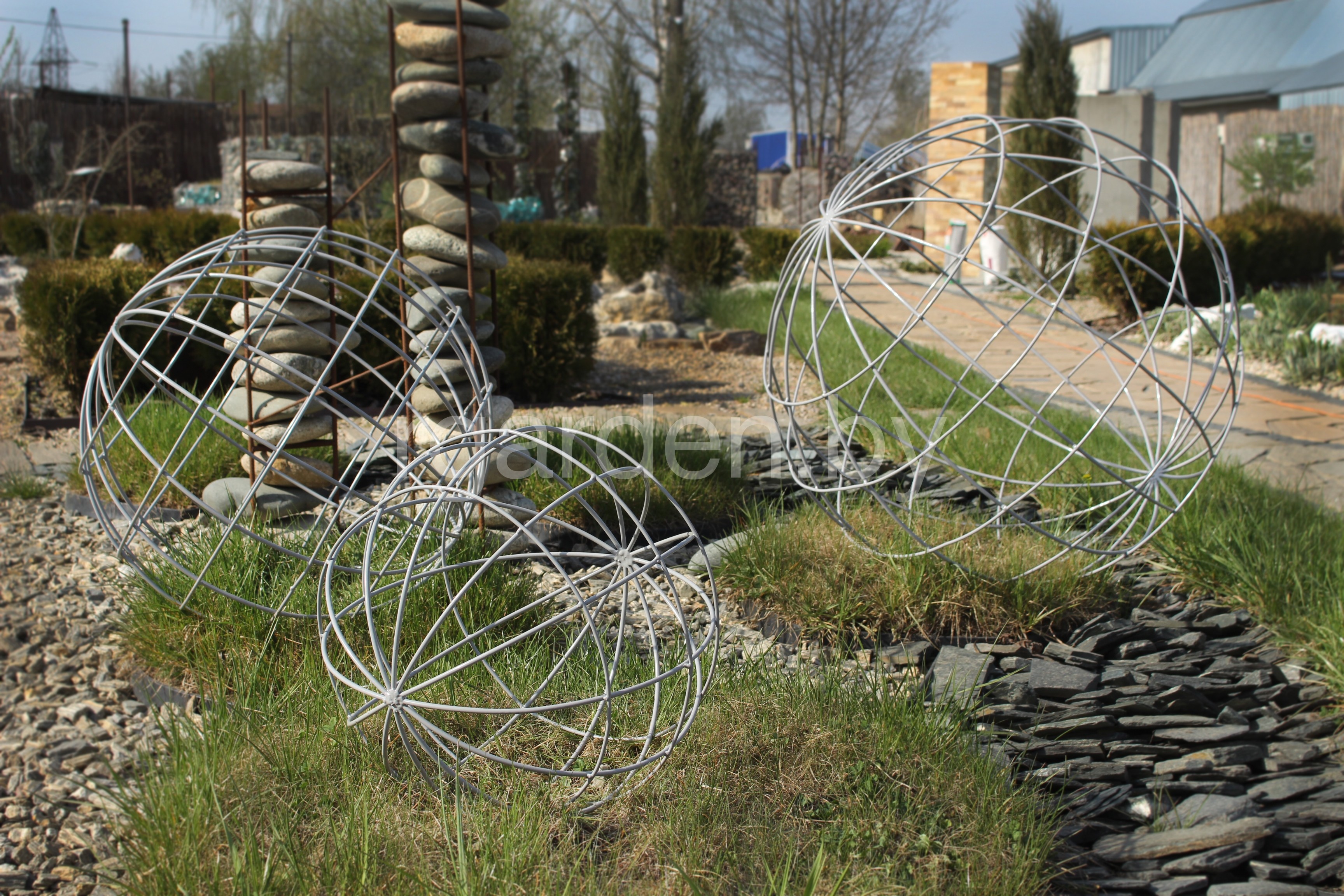 Форма шара в данном случае является универсальной, интересно смотрится как с наполнением, так и без. Может использоваться в качестве кашпо для цветов, либо готовой формы для плетущихся растений.
