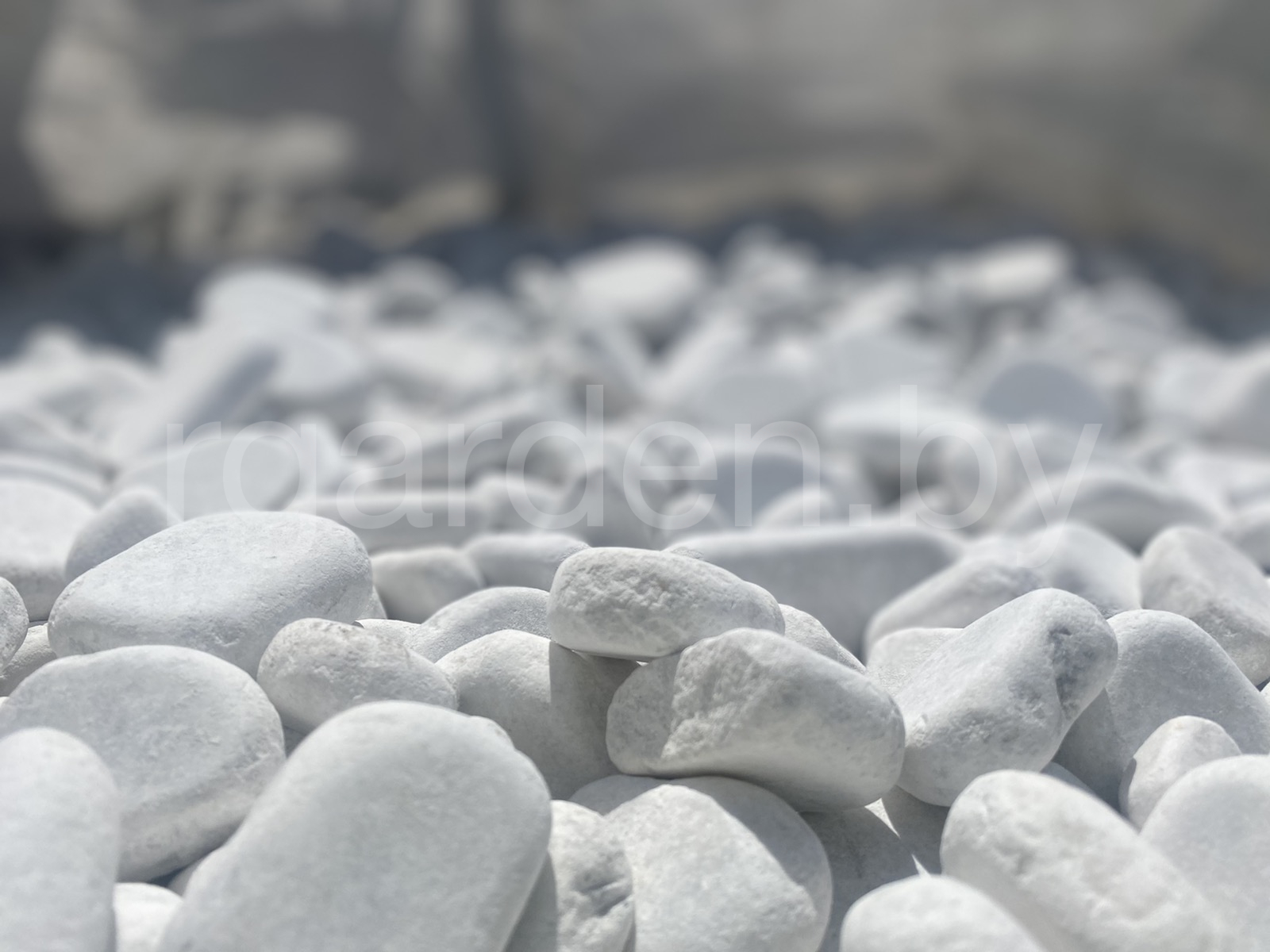 Мраморная галька Бьянко Каррара белого цвета с сероватым оттенением идеально вписывается как в природную стилистику японского сада, так и в строгие рамки сада модерн. Прекрасное контрастное сочетание Бьянко Каррара с другим видом отсыпок темных оттенков делает ее незаменимым инструментом ландшафтных дизайнеров. Широко используется при создании тропинок и площадок, подходит для декора деревьев, кустов, цветов и других насаждений.