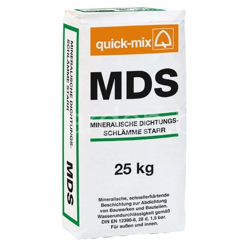 Гидроизоляционный раствор Quick Mix MDS применяется для гидроизоляции выдержанных, прочных, не подвергающихся деформациям, жестких и ровных оснований, таких как: бетон, цементная штукатурка или стяжка, каменная кладка с заполненными швами.