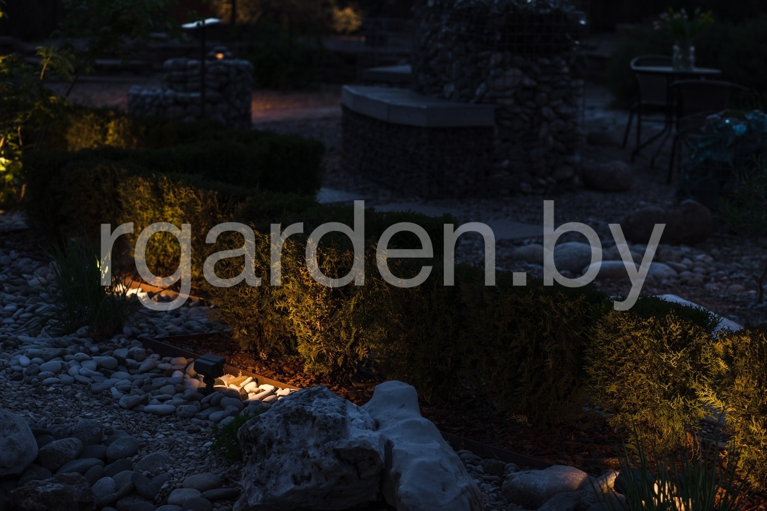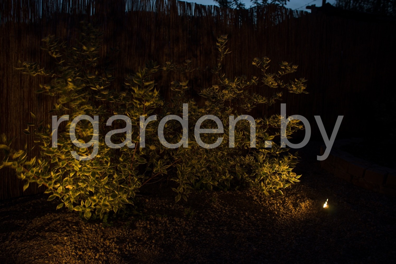 Светильник используется в ландшафтном освещении для подсветки небольших кустарников, растений, цветов. Так же можно его использовать для подсветки подпорных стенок, камней и других элементов ландшафта. Применяется для подсветки подшивок кровли загородных домов и в других случая архитектурного освещения. Он имеет широко расходящийся луч, с углом примерно 160 градусов. При 20W лампе луч освещает предметы, находящиеся на расстоянии до 3х метров от светильника (восприятие силы освещения зависит от окружающей освещенности). Светильник незаметен днем, хорошо сочетается по цвету с растительностью и коваными элементами дома. Латунь долговечный материал и не ухудшает свой внешний облик с течением времени, как алюминиевые светильники. В светильнике используется низковольтная светодиодная 12В лампа мощностью 3 или 5Вт, или галогеновая мощностью до 20Вт, со сроком службы 4000ч (примерно 2 года каждый вечер). Светильник устанавливается в грунт с помощью комплектного пластикового якоря. В случае хорошего крепкого дерна светильник стоит в нем плотно и надежно. Возможна установка на твердые поверхности, в том числе на бетон, с помощью дополнительно приобретаемого кронштейна SBASE. Для работы светильника требуется понижающий трансформатор. Рекомендуется использовать профессиональные модели и полностью низковольтную разводку питания для освещения в ландшафте для безопасности.