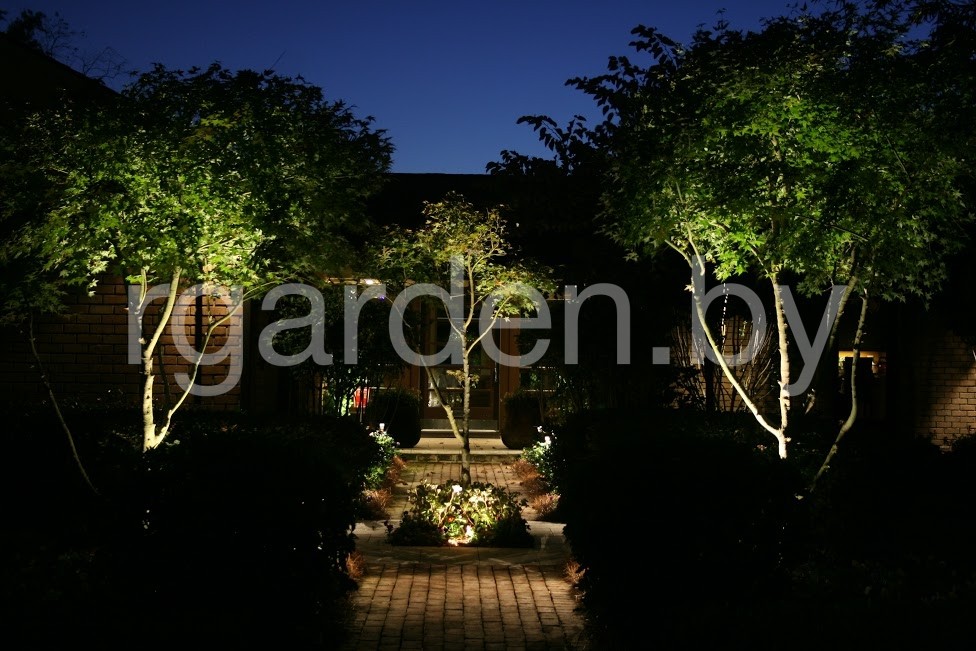 Очень популярный светильник. Его можно использовать для подсветки кустов, деревьев в ландшафте, в этом случае он закапывается в землю. Так же его можно встраивать в деревянные палубы, отмостку зданий для подсветки стен домов. У светильника есть защитный козырек, который предотвращает попадание прямого света в глаза и ослепление ночью. Светильник незаметен днем, хорошо сочетается по цвету с растительностью и коваными элементами дома. Латунь -долговечный материал и не ухудшает свой внешний облик с течением времени, как,например, алюминиевые светильники. В светильнике используется низковольтная светодиодная 12В лампа мощностью 3, 5 или 7Вт. Угол распространения луча зависит от установленной лампы, типовые значения: 10, 15, 36, 60 градусов. 36-градусная лампа мощностью 5-7 Ватт освещает объекты высотой до 10 метров.