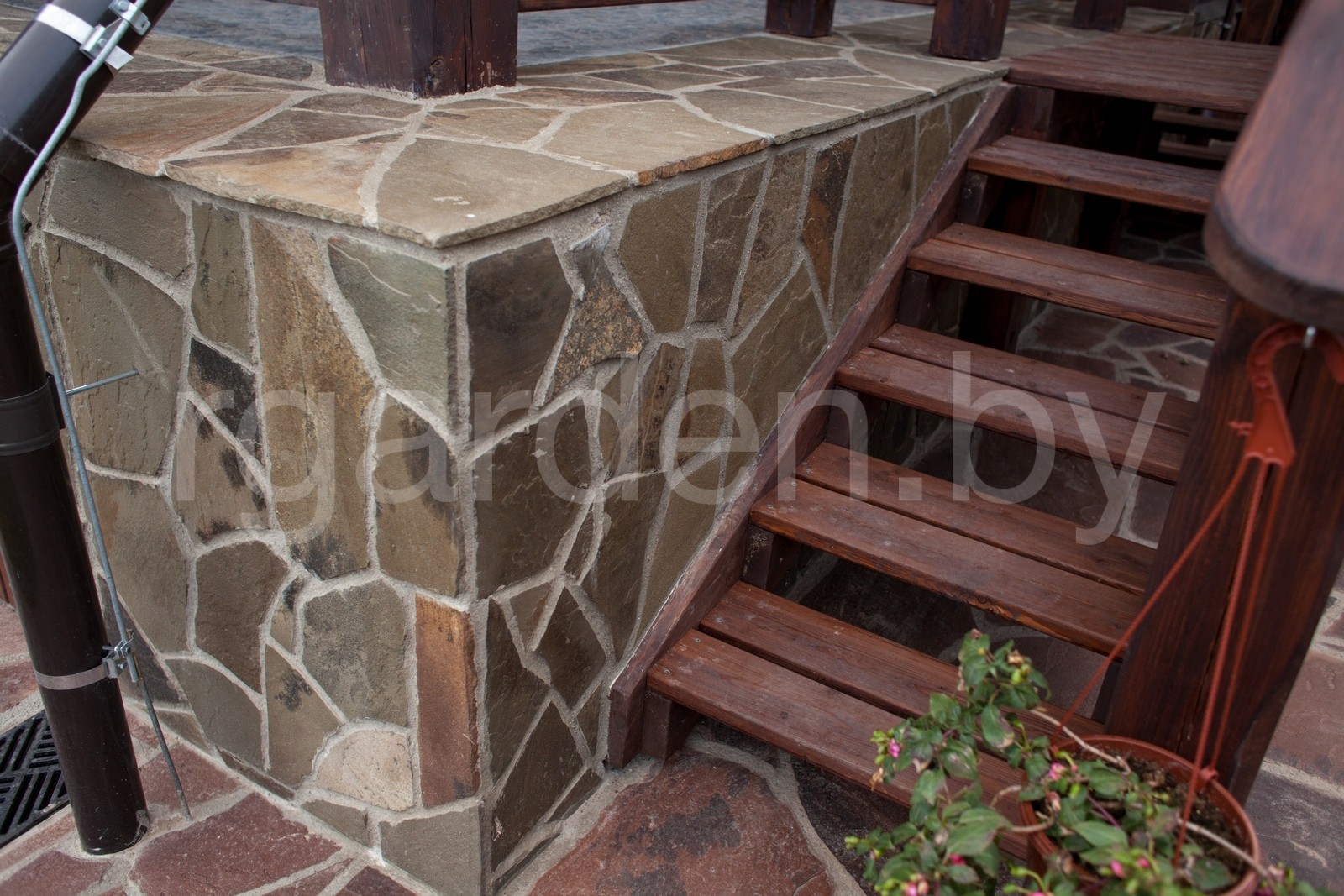 В целях повышения долговечности и защиты от влаги рекомендуется использовать после укладки влагозащитные покрытия, так как натуральный камень песчаник по природе своей имеет пористую структуру.