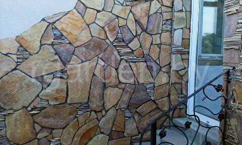 Несмотря на то, что поверхность камня считается плоской, она сохраняет природные шероховатости камня, которые не только создают столь интересный стиль, но еще и позволяют проводить облицовочные работе с меньшими затратами, так что именно на этот вариант песчаника следует обратить свое внимание при выборе материала для мощения или облицовки