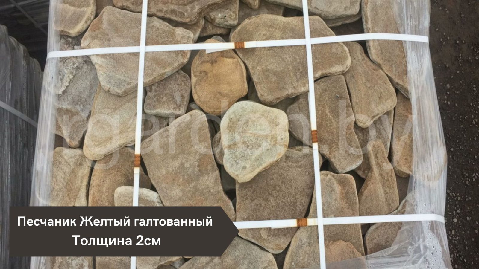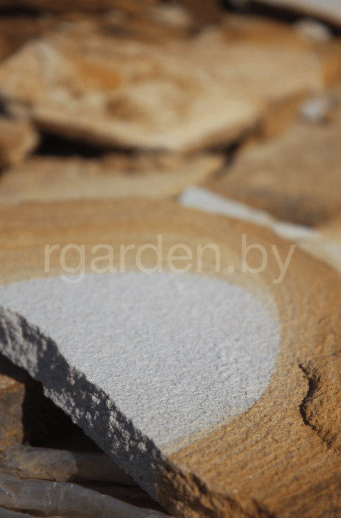 Также мы предлагаем песчаник «Желто-рыжий» в галтованном варианте ( со слегка скругленными краями), таким камень получается после специальной обработки.