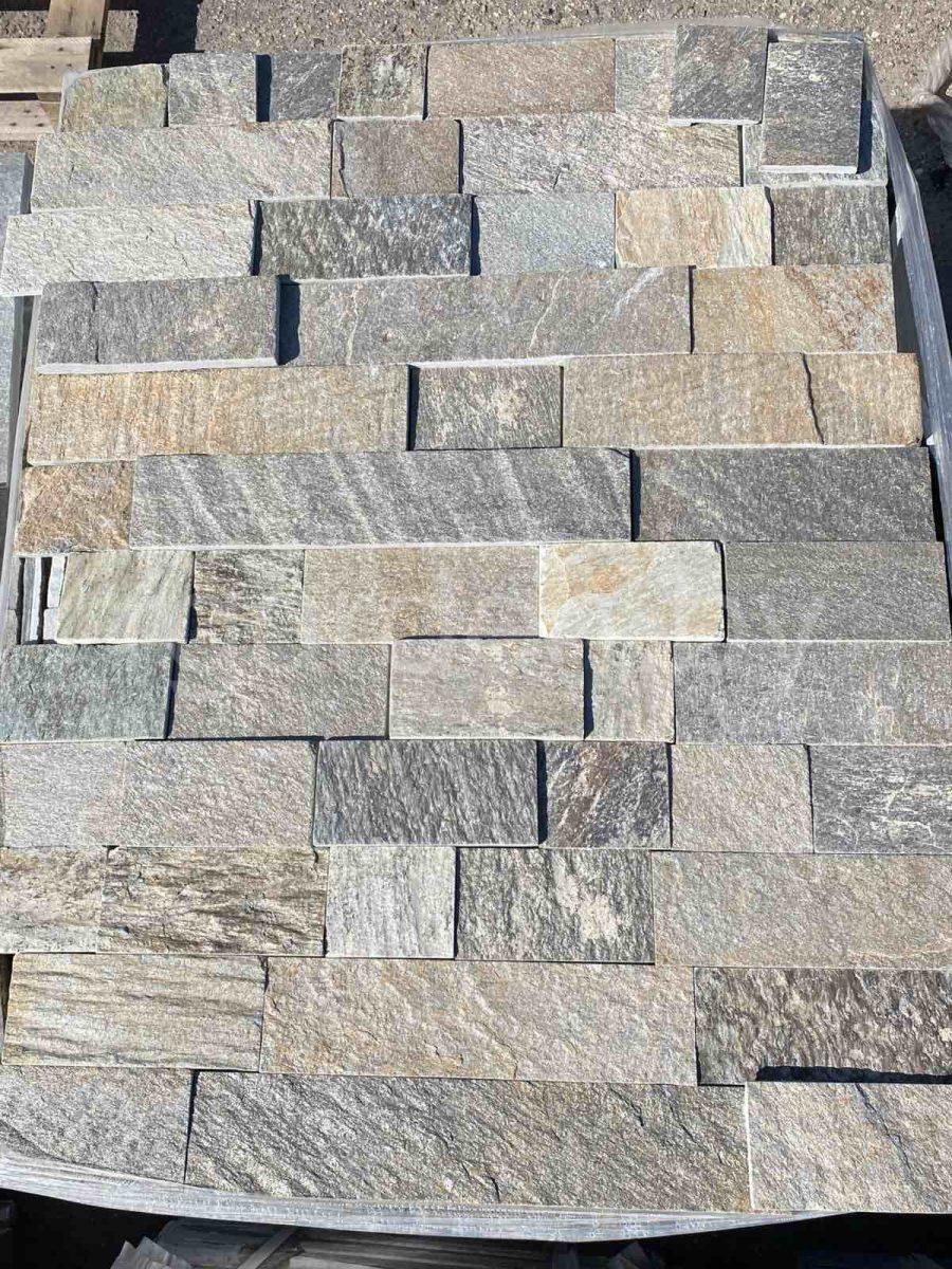 Плитка из сланца Серицит прочно закрепилась в лидерах для внутренней и внешней отделки. Камень текстурный, цвет сланца серый, с ненавязчивым блеском и вкраплениями тёплых песочных оттенков. Наиболее популярные размеры плитки: высота 3*L ,5*L,10*L (где L — произвольная длина) ,также возможно комбинирование разных размеров.