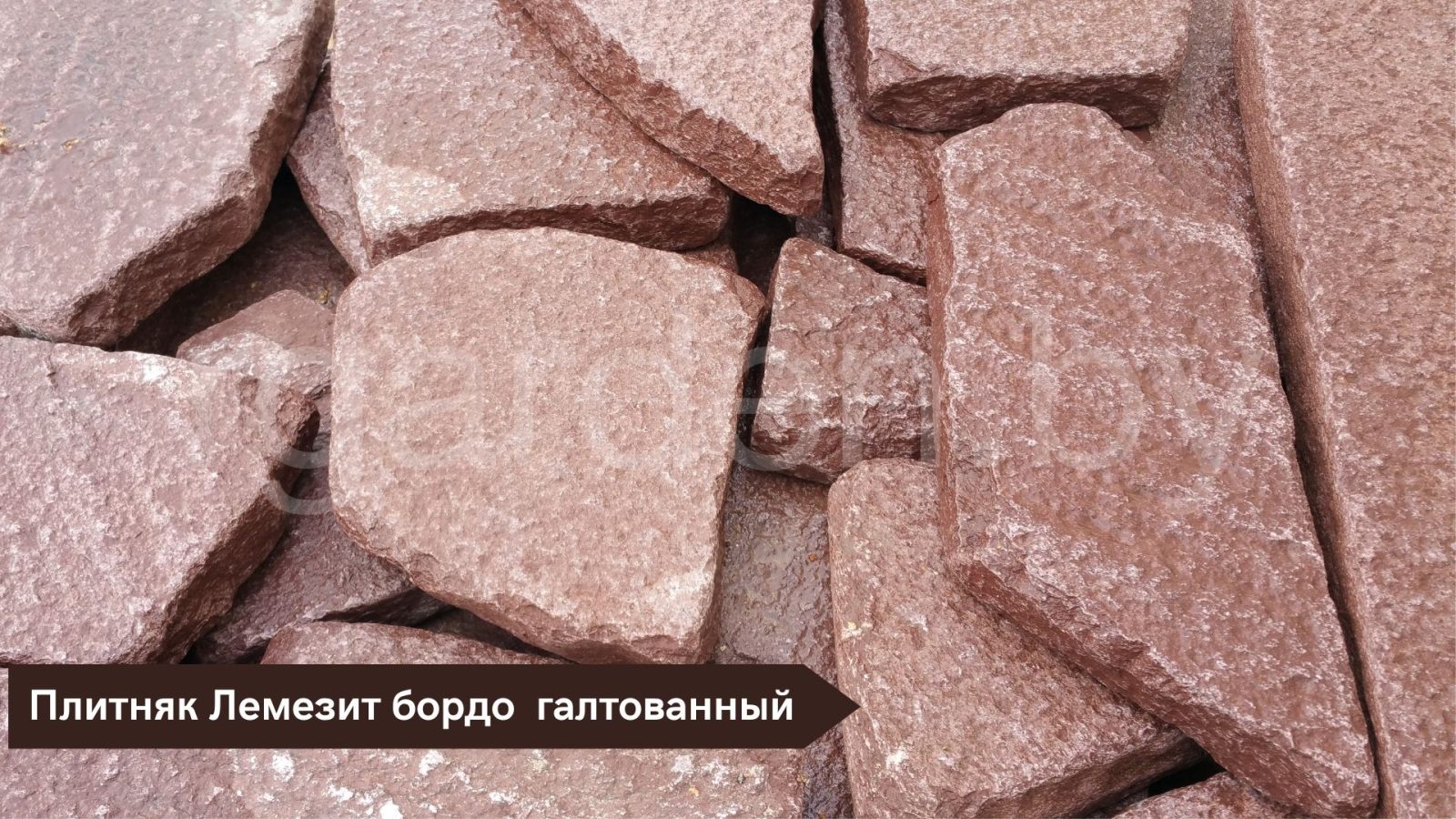 Также мы предлагаем Лемезит Бордо в галтованном варианте ( со слегка скругленными краями), таким камень получается после специальной обработки в барабане.