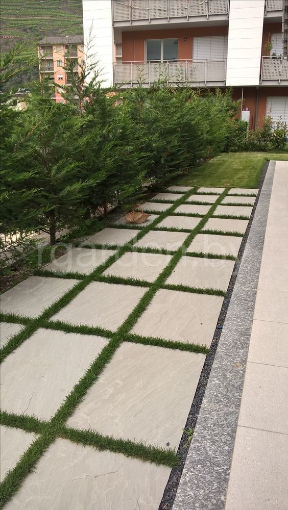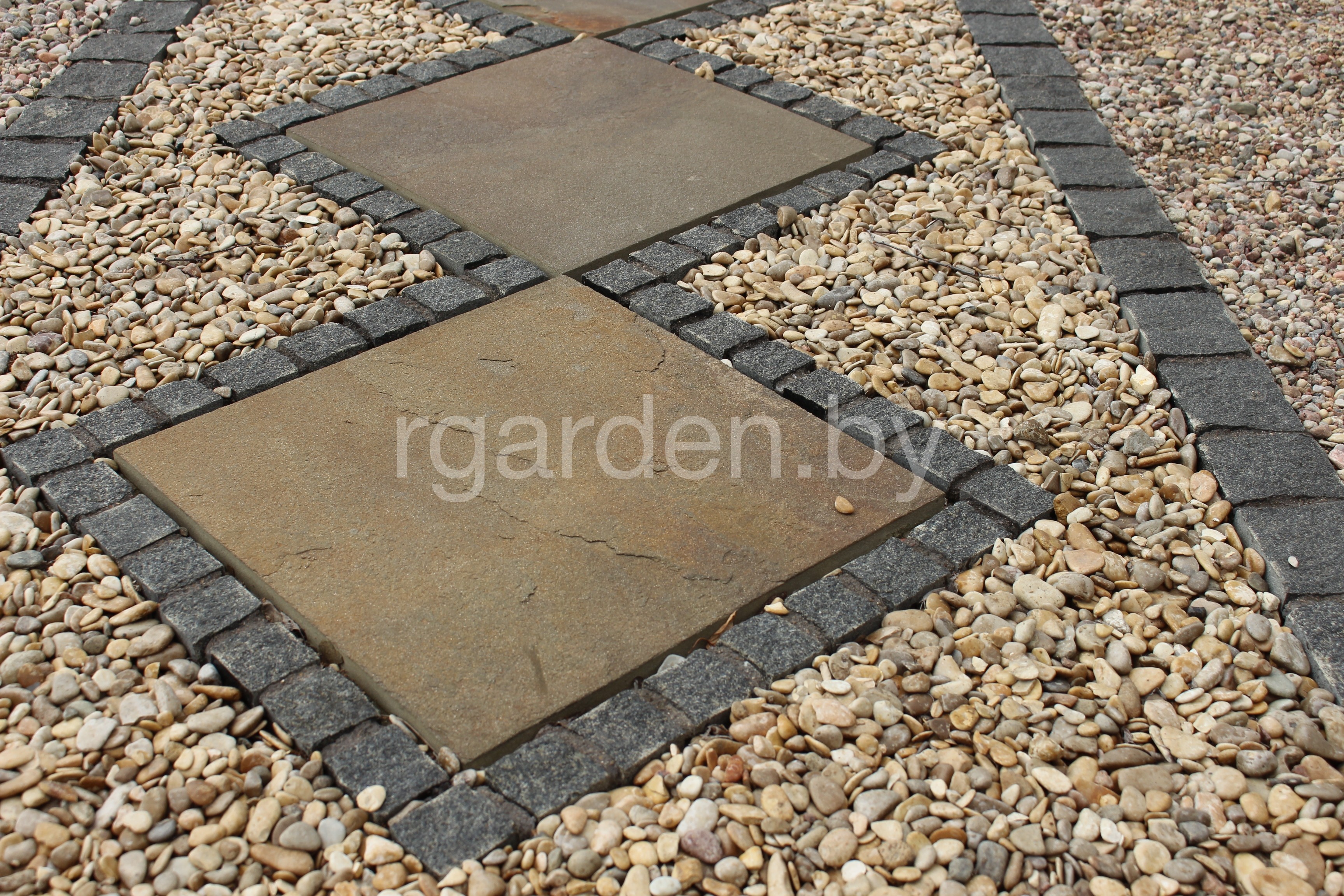 Ступовые (пошаговые) плиты прямоугольной формы толщиной 30-60мм, с ровными пилеными краями, также возможны с фаской по периметру.