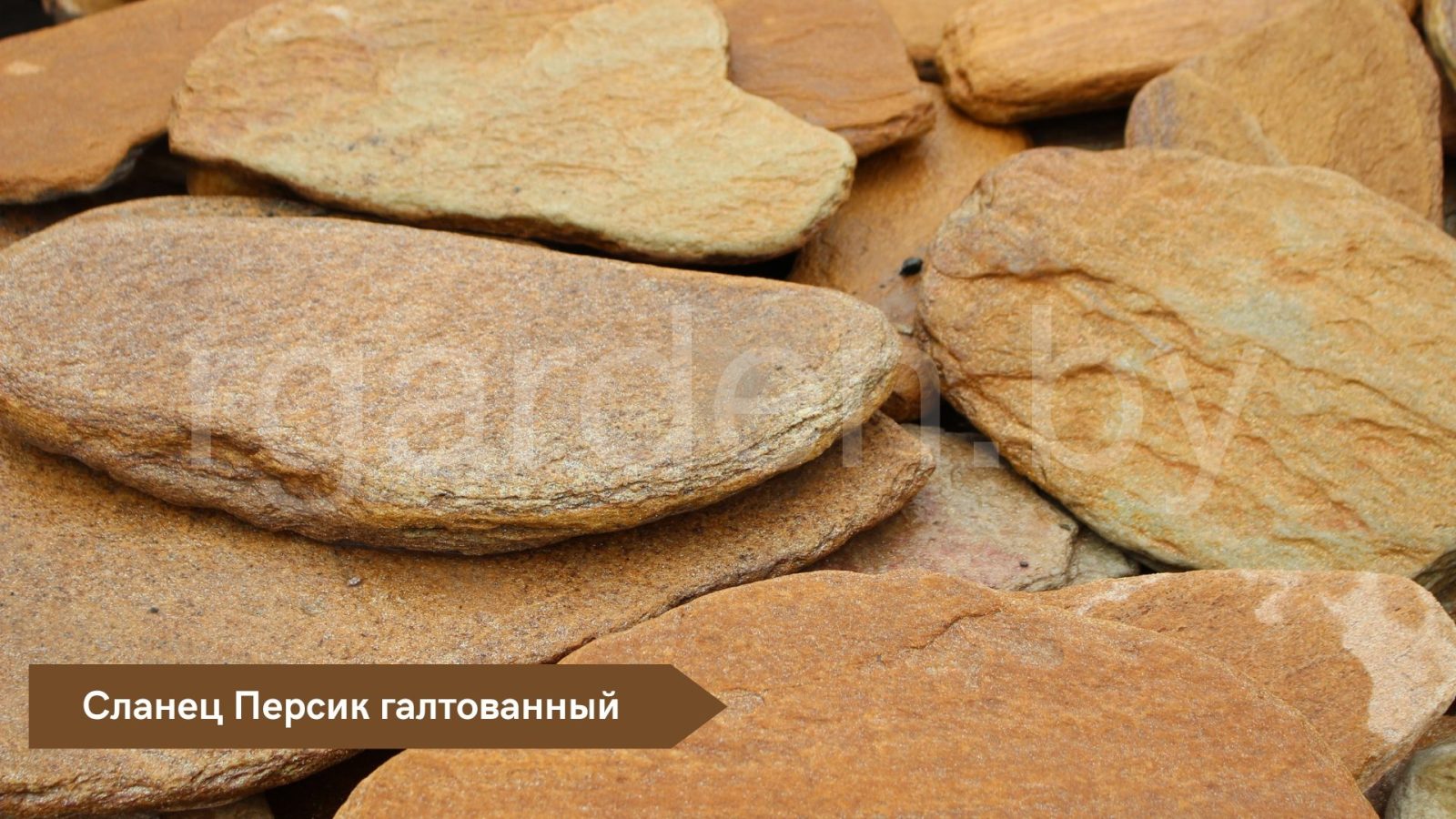 Также мы предлагаем сланец «Персик» в галтованном варианте ( со слегка скругленными краями), таким камень получается после специальной обработки в барабане.