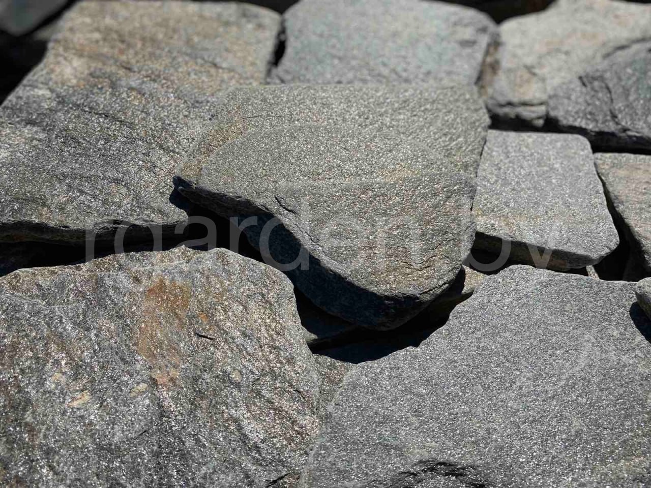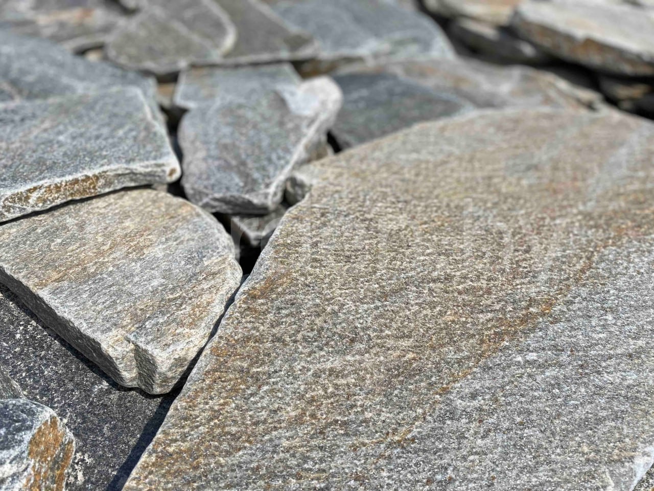 Сланец является популярным материалом для мощения дорожек и, в частности, Сильвер — это один из его вариантов. Его текстура сочетает в себе различные оттенки серого цвета, создавая эффект натуральных мраморных узоров.