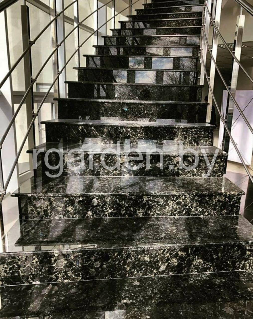 У нас Вы всегда можете купить полированные и термообработанные (с эффектом антискольжения) ступени из Лабрадорита. Изготавливаем по Вашим размерам, доставляем на объект, монтируем.