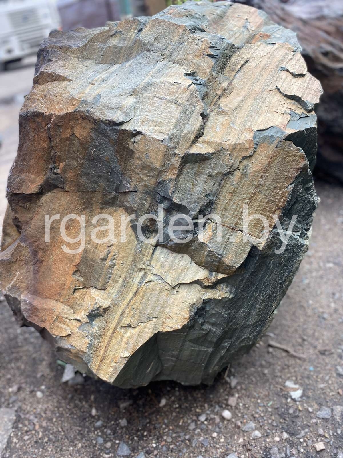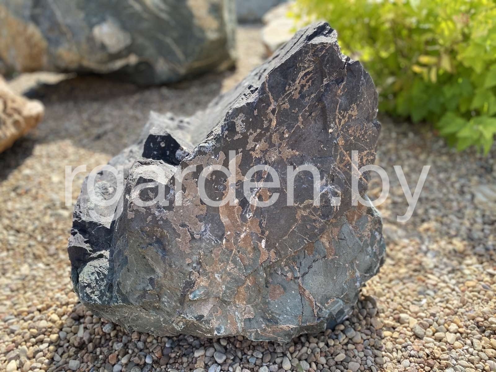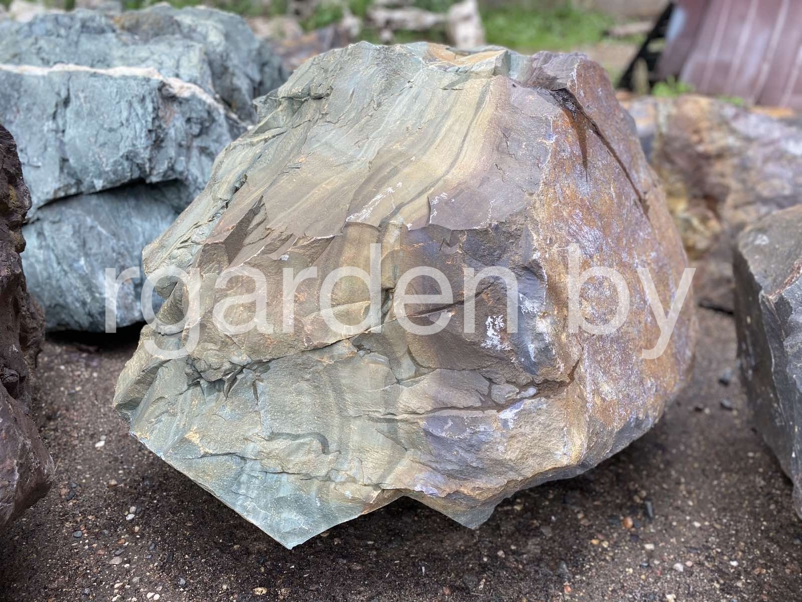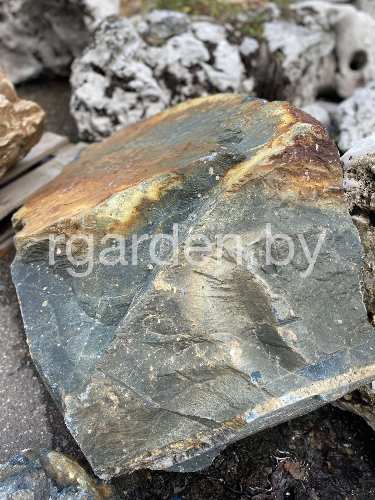 Валун имеет яркое сочетание зеленого, бордового фиолетового, белого и других оттенков. Благодаря необычной цветовой гамме, этот камень нашел широкое применение в дизайне садов, парков, дачных участков, придомовых территорий.