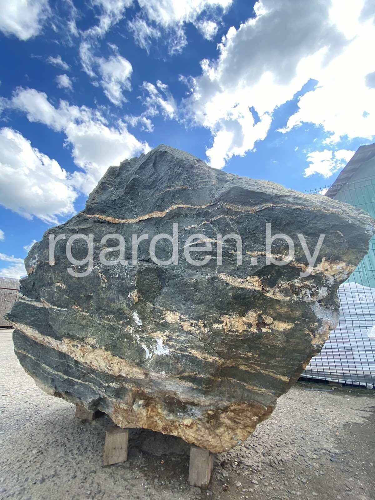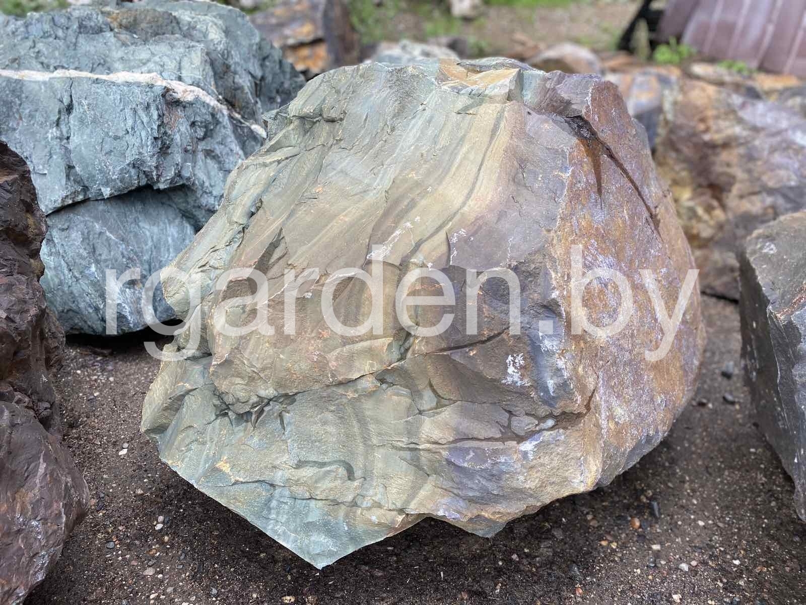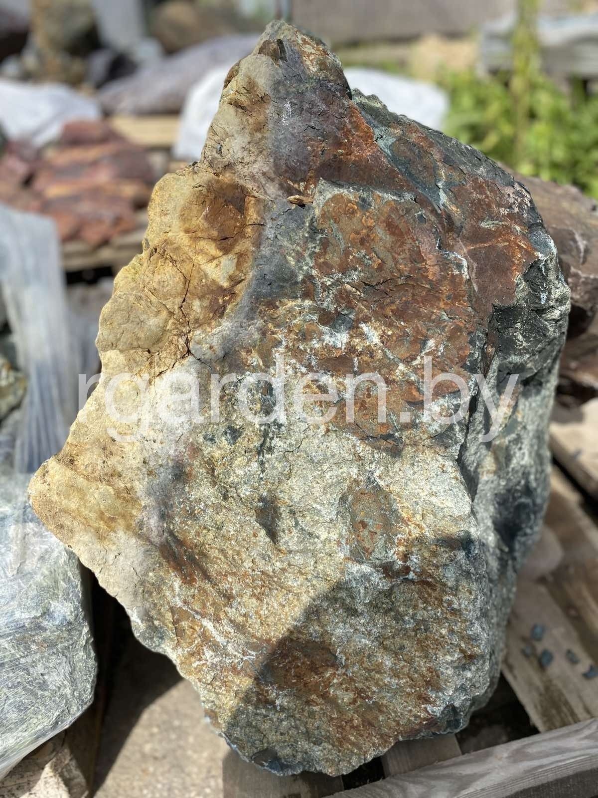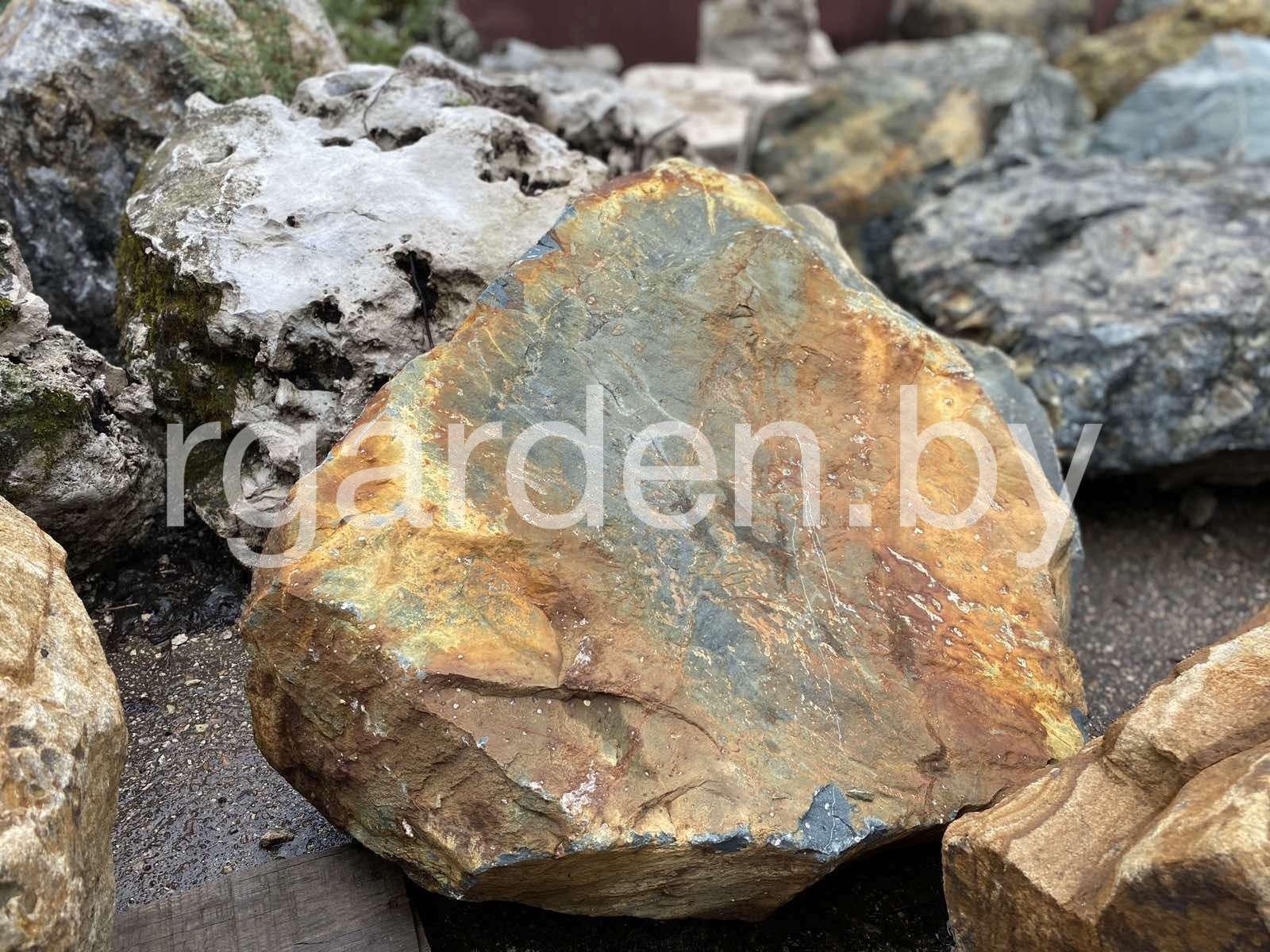Валун имеет яркое сочетание зеленого, бордового фиолетового, белого и других оттенков. Благодаря необычной цветовой гамме, этот камень нашел широкое применение в дизайне садов, парков, дачных участков, придомовых территорий.